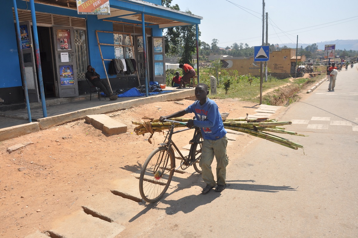 A young man vending sugar cane in Ntungamo town